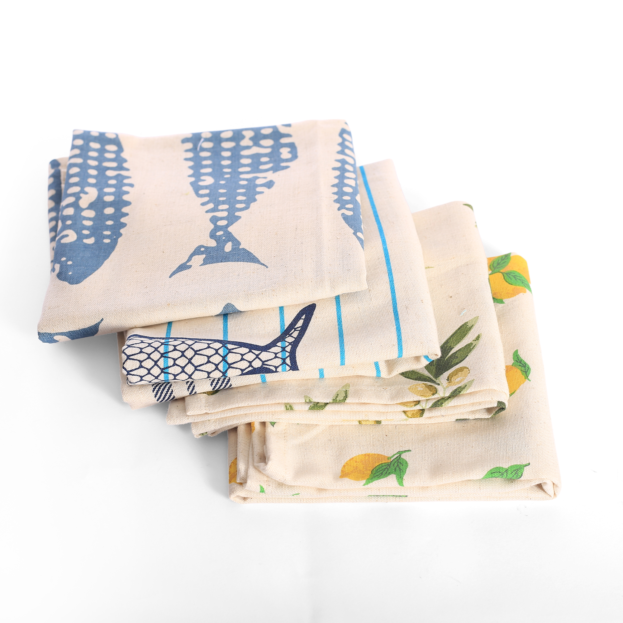 מגבת מטבח בהדפס דגים בכחול קלאסי – מוסיפה נגיעה ימית ורעננה לכל מטבח.